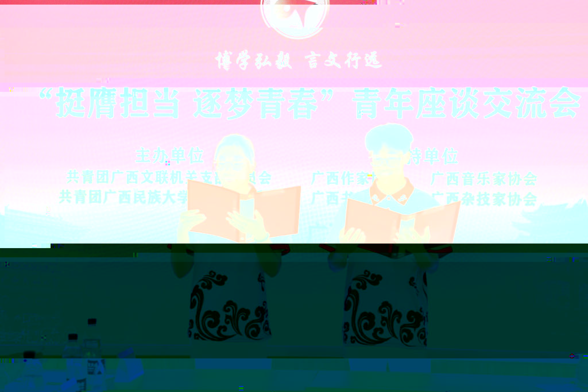 在老師們的影響和鼓勵下,雙方團員青年代表開展現場交流。同學們針對自身在寫作、書法等方面遇到的困難提出疑問,廣西文聯機關團支部青年根據自身經曆,結合相關知識,解答問題并分享了自己的經驗。