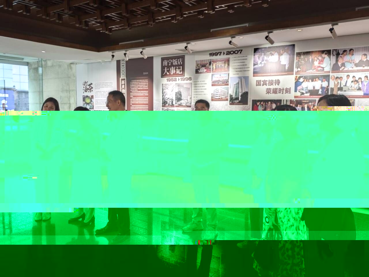 首先,調研組一行在羅慶、黨愛芳等人陪同下,參觀了南甯飯店曆史沿革和品牌展、民族酒樓、小嘟來烘焙店、聚和樓多功能會議廳等,根據羅總經理介紹,南甯飯店原址為南甯府孔廟,具有深厚的曆史底蘊,集團目前的産品經營均圍繞廣西民族風情特色品牌打造,擁有“中國餐飲業百強企業”等多項美譽。