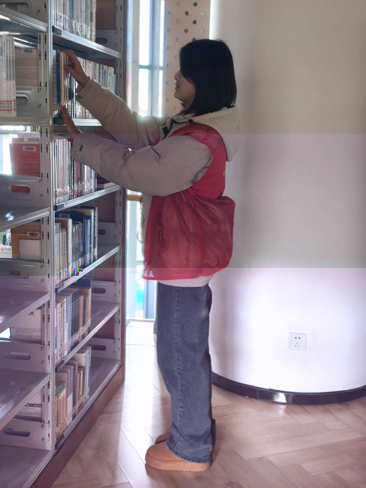 在志願服務期間,志願者們分工明确、協同配合,迅速投入到各自的崗位中。負責書架整理工作的志願者,仔細甄别每一本書籍的編号,将擺放淩亂的書籍精準歸位,使書架迅速恢複整齊有序的狀态,方便讀者查找。在借閱服務區域,志願者們協助圖書館工作人員辦理借閱手續,面對前來借閱的同學們提出的各類疑問,始終保持耐心,一一給予詳盡解答。館内巡視組的志願者們,定時在圖書館内開展巡查工作,全力維護館内的閱讀秩序,禮貌提醒讀者保持安靜,為每一位讀者營造出安靜、舒适的閱讀環境。