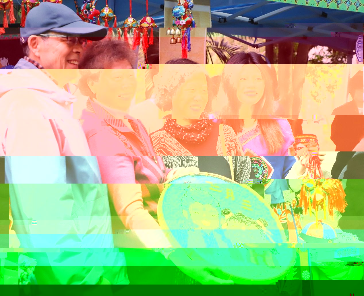 遊客與民族展品合影