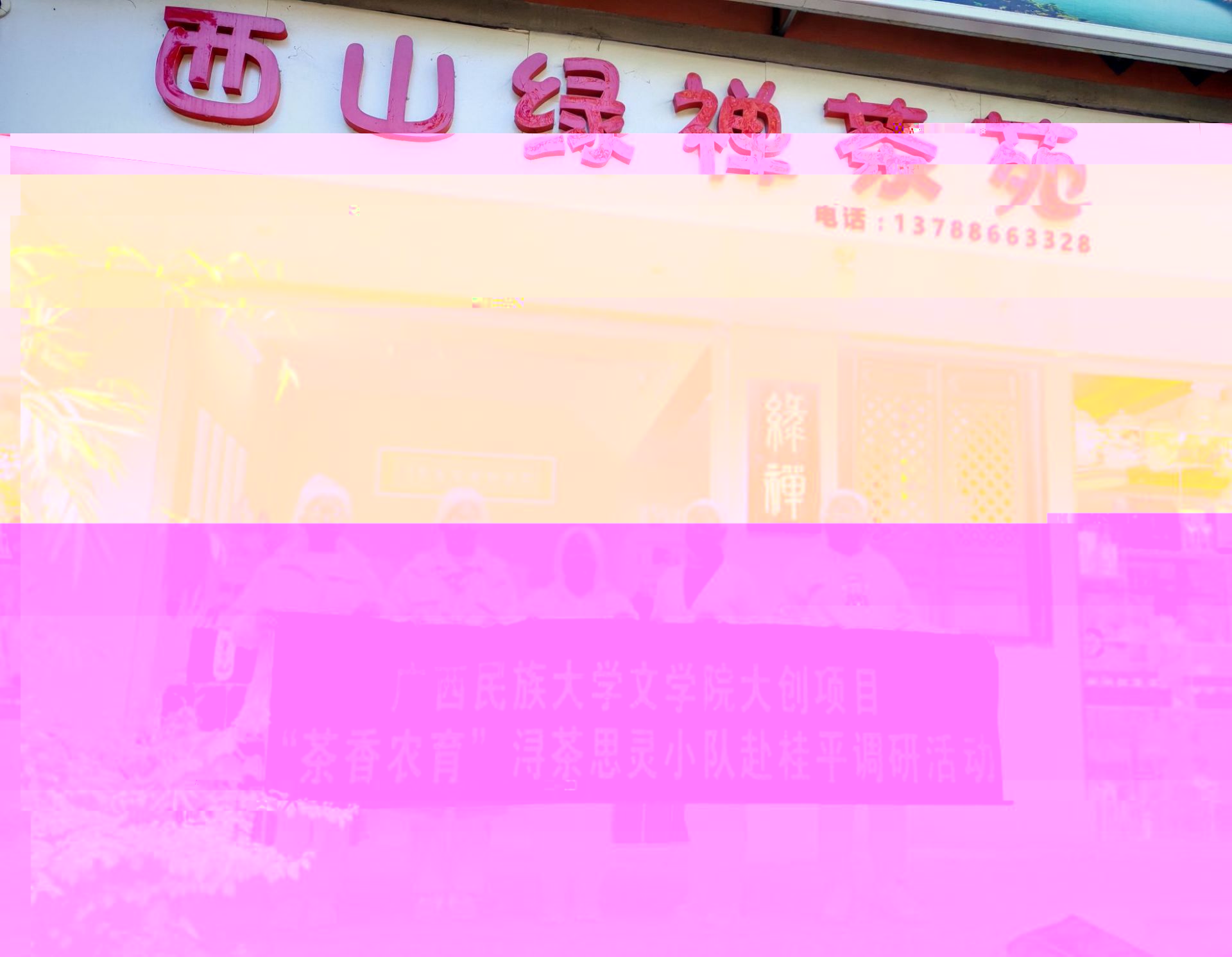 紫荊鎮的碧水茶園生産基地是桂平市現代特色茶業核心示範區。在工作人員的帶領下,團隊參觀茶園的文化長廊,了解西山茶的曆史淵源,并走進生産車間,觀摩現代制茶技術。在茶藝體驗環節中積極學習泡茶技藝,感受茶藝的獨特魅力。最後,團隊深入茶園和育苗場,實地考察茶樹種植環境,為後續研究積累了寶貴的一手資料。