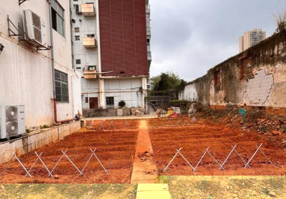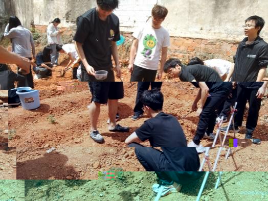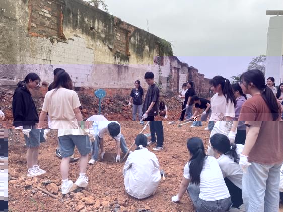 老師與同學們共同開展翻土、碎土、平整土地、搭建圍欄等工作