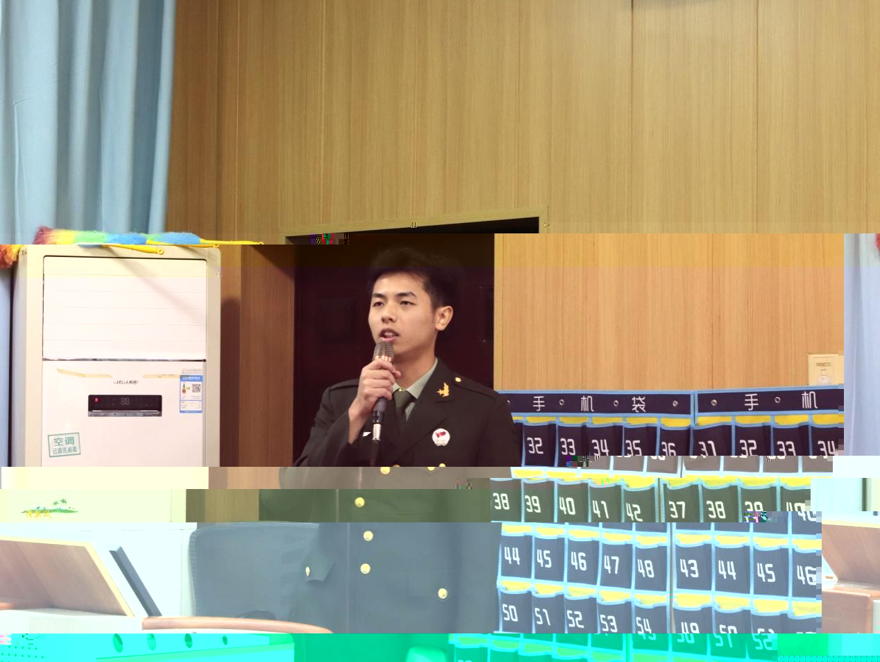 覃志林從為什麼要參軍、參軍帶來的改變以及軍營生活裡的趣事三個方面進行分享。他表示,軍旅生活鍛煉了他的意志品質,與戰友建立了深厚的情誼。軍旅生活是不可多得的人生體驗,覃志林鼓勵我院學子勇擔使命,積極參軍報國,讓青春之花在祖國邊防綻放。